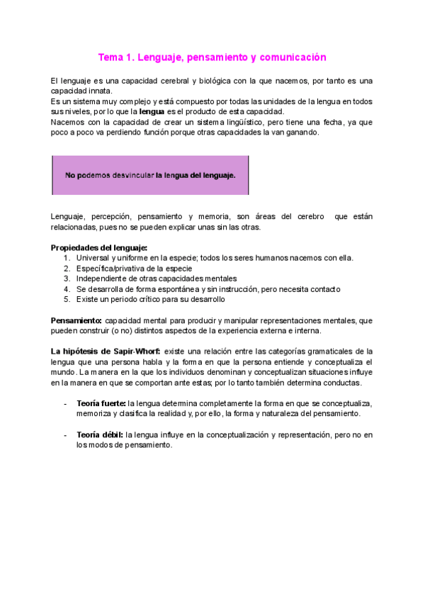 Teoría Lengua Española I