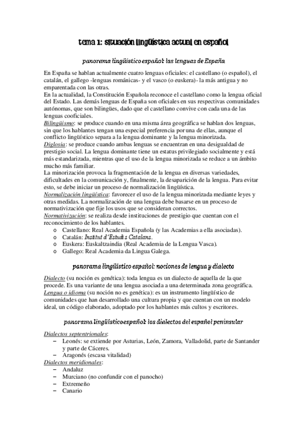 Lengua Española para la Traducción I. Tema 1: situación lingüística actual en español