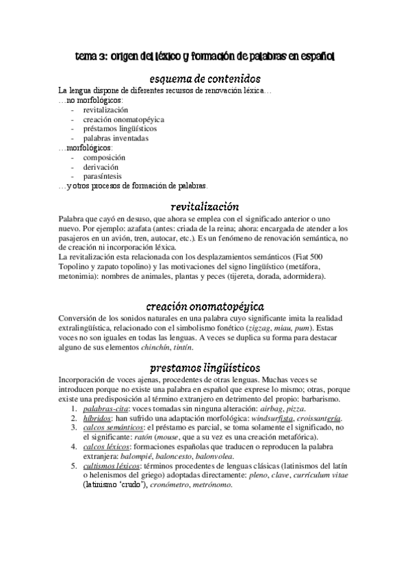 Lengua Española para la Traducción I. Tema 3: formación del léxico en español