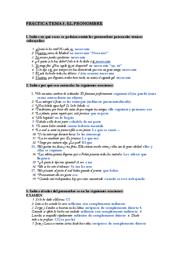 Práctica del tema 5 (pronombre) resuelta de la asignatura Lengua española para la traducción (I).