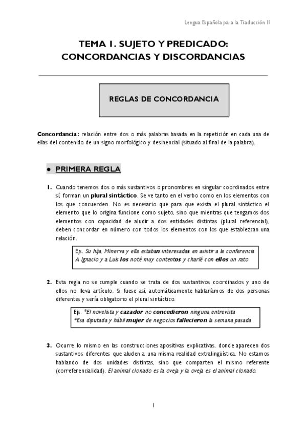 He publicado nuevos apuntes de 1º LENGUA ESPAÑOLA PARA LA TRADUCCIÓN II: TEMA-1-Concordancia.pdf