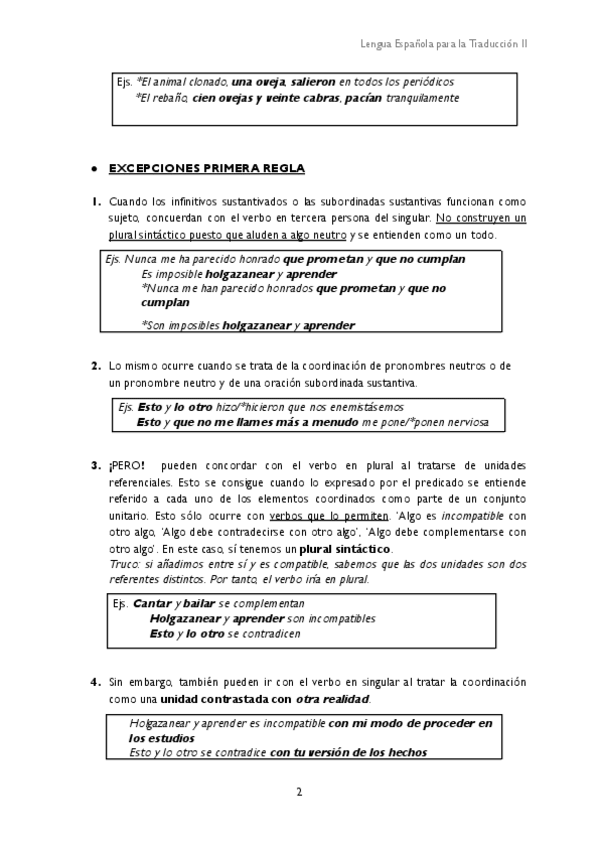 LENGUA ESPAÑOLA PARA LA TRADUCCIÓN II EJERCICIOS