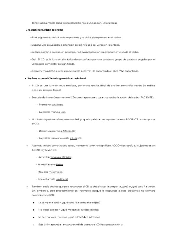 Resúmenes TEMA 1: sujeto y predicado, concordancias y discordancias. TEMA 2: 1,2,3,4 2.1. objeto directo 2.2. objeto indirecto (NO ES TEMA 3, ES TEMA 2.2) 2.3. objeto preposicional 2.4. queísmo y dequeísmo