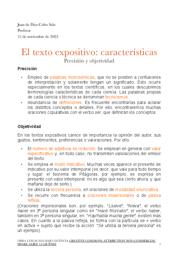 He publicado nuevos apuntes de 1º Lengua Española Para Maestros: Texto-expositivo-caracteristicas-PRECISION.pdf