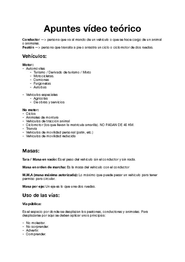 Buenos Apuntes para estudiar el teórico del permiso B.