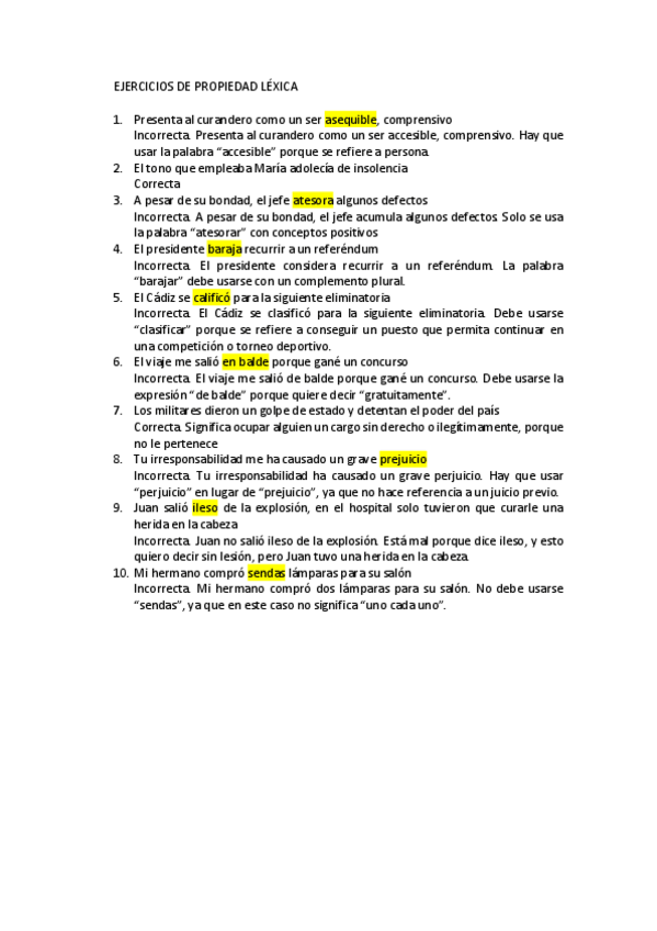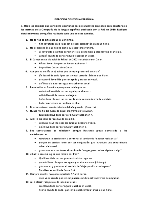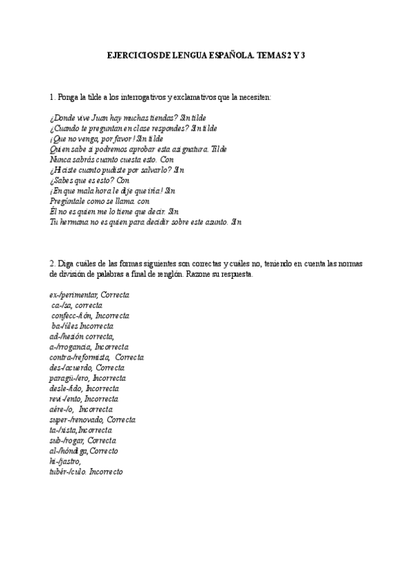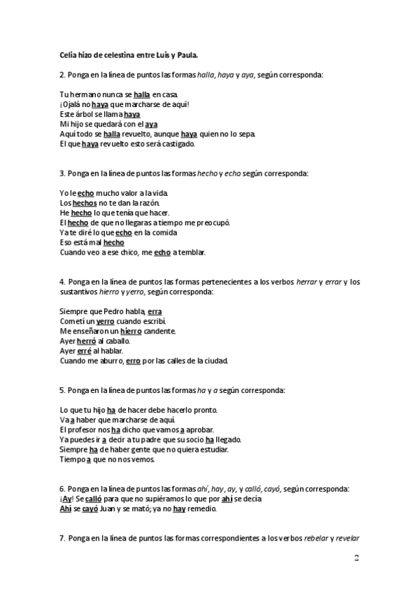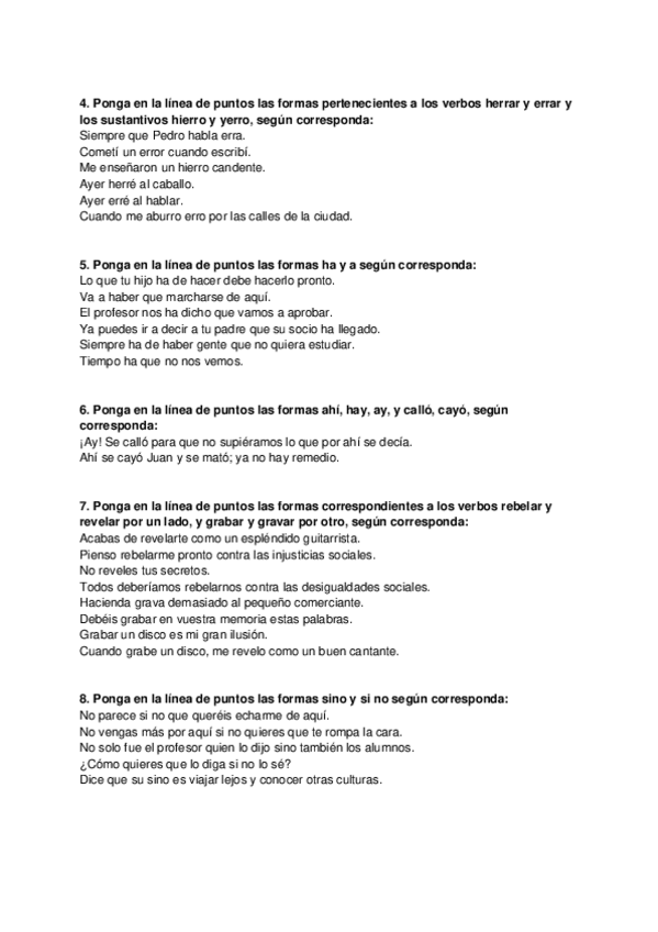 Ejercicios ortografía