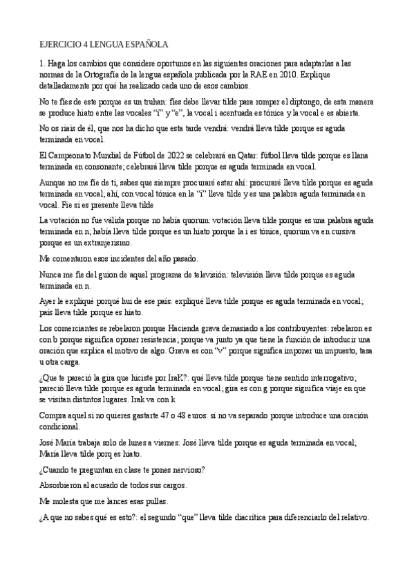 Ejercicio ortografía