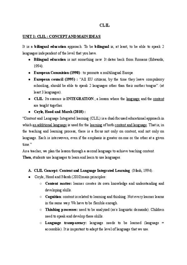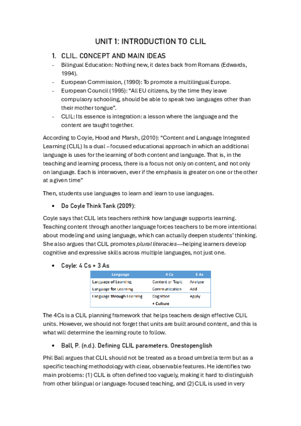 He publicado nuevos apuntes de 4º Lengua Extranjera para el Ejercicio de la Profesion Docente: CLIL-teoria.pdf