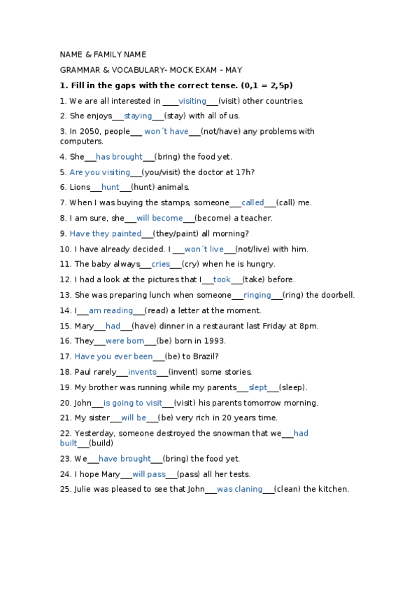 Grammar for the exam