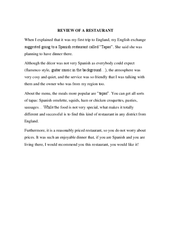 He publicado nuevos practicas de 1º Lengua Extranjera y su Diáctica I: Inglés: review-of-a-restaurant.pdf