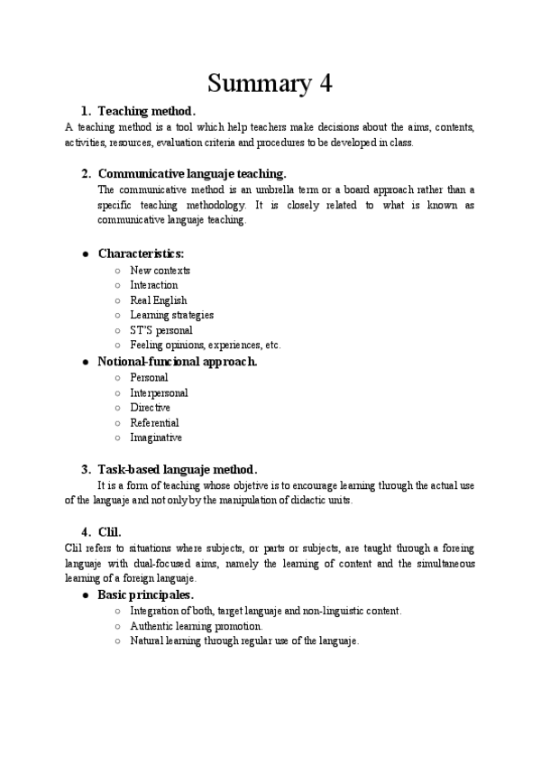 He publicado nuevos apuntes de 1º Lengua Extranjera y su Didáctica. Inglés: UNIT-4-SUMMARY.pdf
