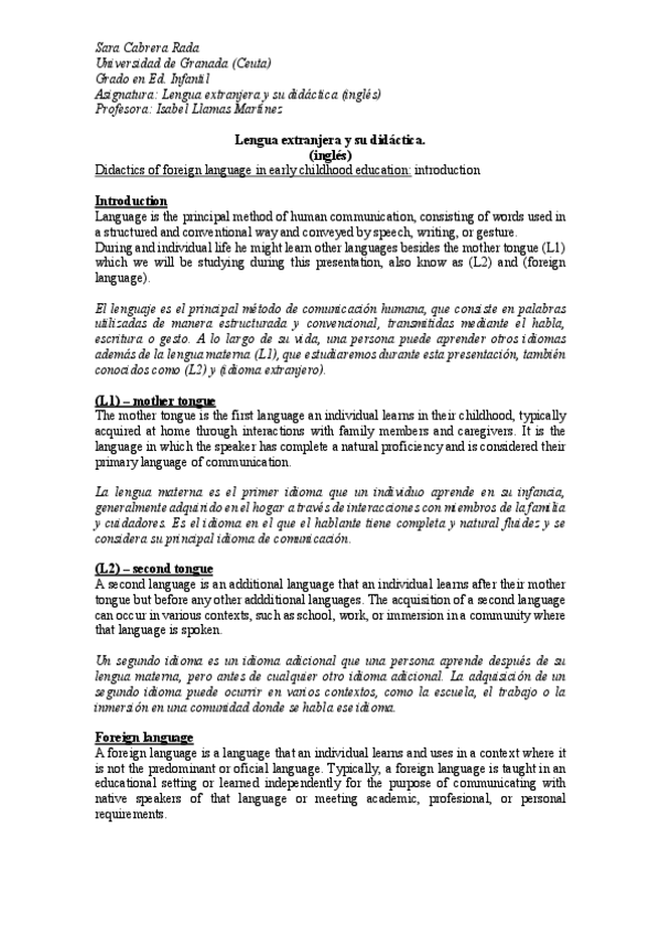 He publicado nuevos apuntes de 1º Lengua Extranjera y su Didáctica. Inglés: Tarea-2.pdf