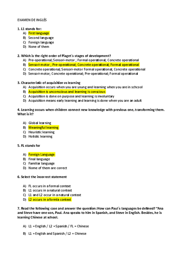 He publicado nuevos examenes de 1º Lengua Extranjera y su Didáctica. Inglés: Examen-ingles.pdf