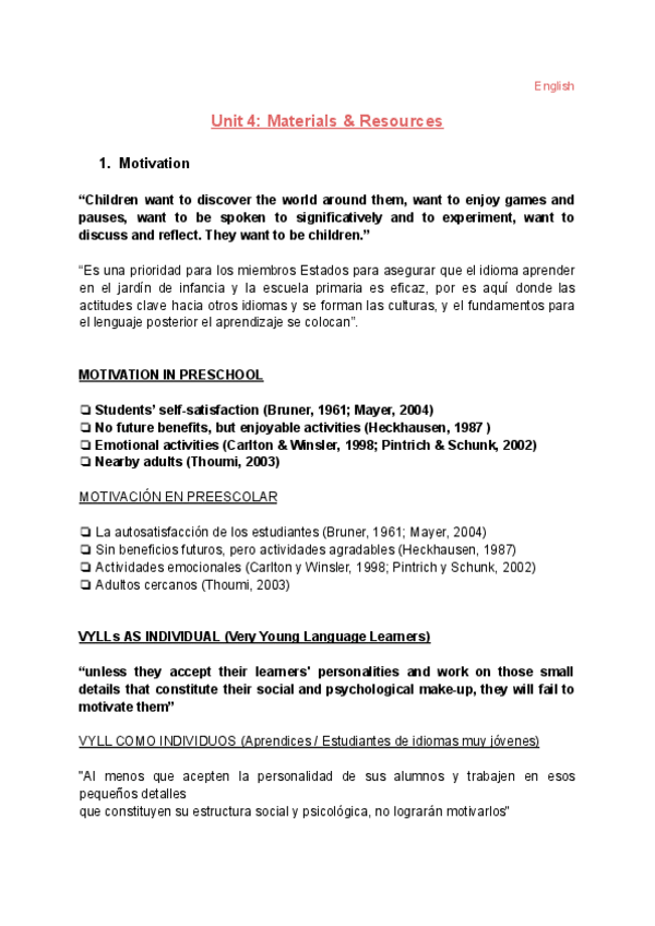 He publicado nuevos apuntes de 1º Lengua Extranjera y su Didáctica. Inglés: Unit-4-Material-and-Resources.pdf