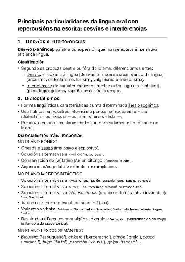 Tema 4: Principais particularidades da lingua oral con repercusións na escrita. Desviacións