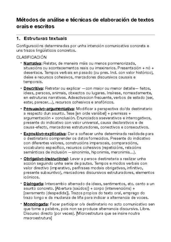 Tema 5: Métodos de análise e técnicas de elaboración de textos orais e escritos
