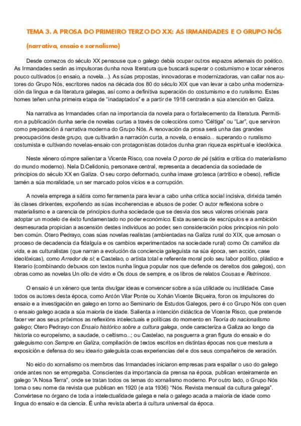 Resumen de 1 carilla con todo o contido sobre a litertura galega do primeiro terzo do século XX