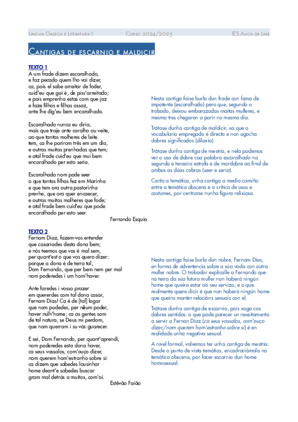 He publicado nuevos apuntes de 4º Lengua Gallega y Literatura: Cantigas-de-escarnio-e-maldicir-textoscomentarios.pdf