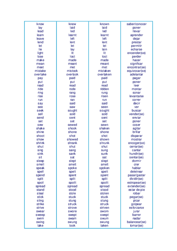He publicado nuevos apuntes de 2º Lengua Inglesa / Lengua Francesa: Irregular-verbs.pdf