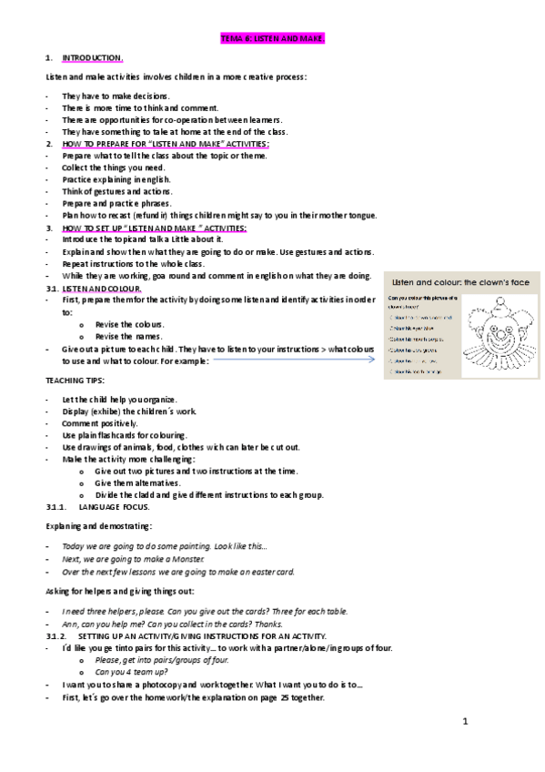 He publicado nuevos apuntes de 3º Lengua Inglesa y su Didáctica: LISTEN-AND-MAKE.pdf