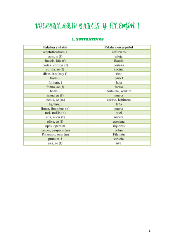 VOCABULARIO BAUCIS Y FILEMON I