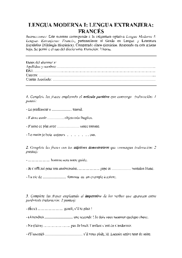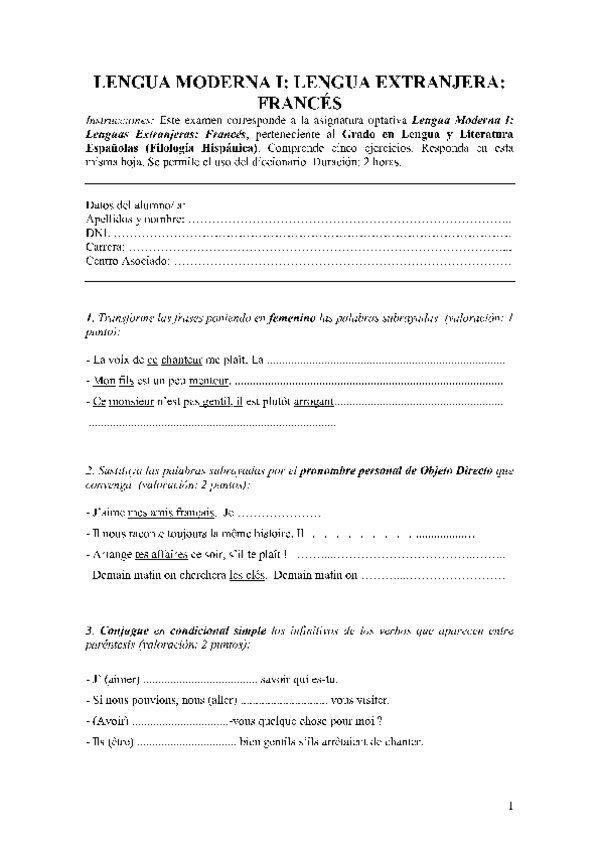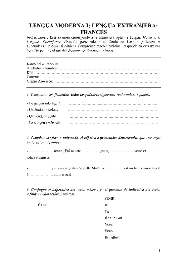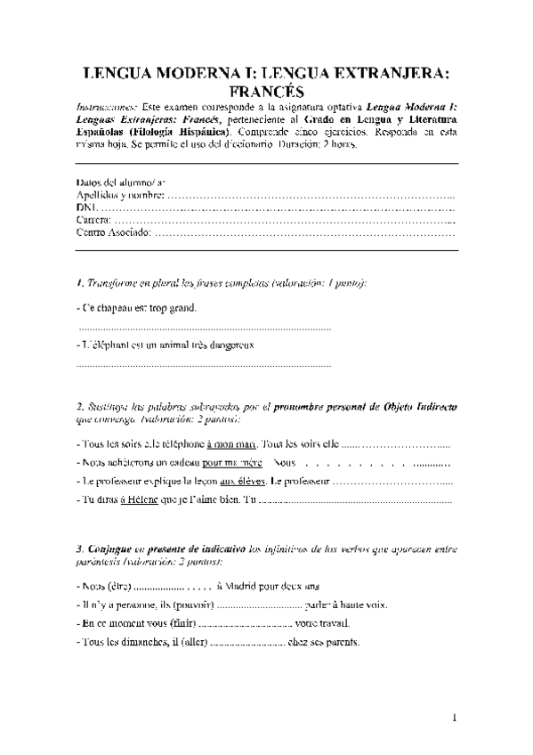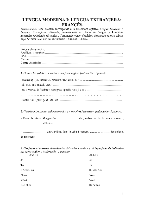 Lengua Moderna I. Lengua Extranjera: Francés