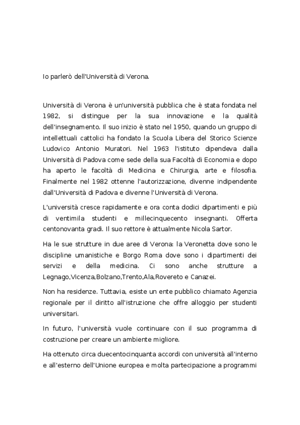 Tuvimos que hacer una presentación sobre la Universidad de Verona y esto es lo que yo dije en mi exposición. Está al español y traducido al italiano.