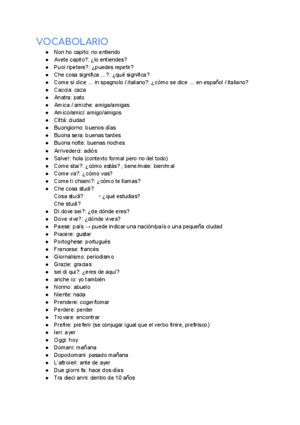 Contiene todo el vocabulario del 1° curso de italiano de Lenguas Modernas como lengua maior. Niveles A1 y A2