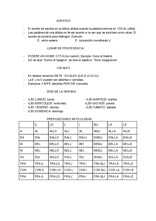 Contiene toda la gramática de todo el primer curso de italiano en lenguas modernas, niveles A1 y A2