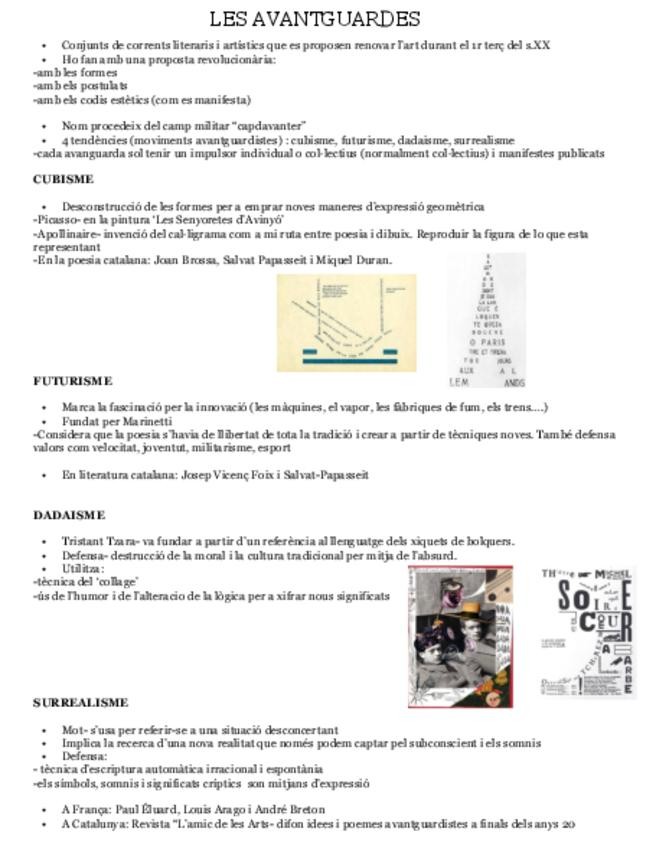 Les Avantguardes Segón Batxillerat (Cubisme, Futurisme, Surrealisme, Dadaisme) i autors destacats