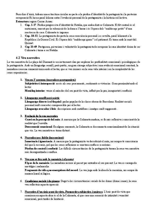 Preguntas teóricas y prácticas de La plaça del Diamant