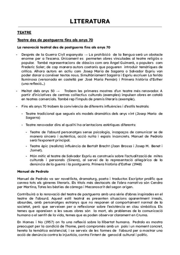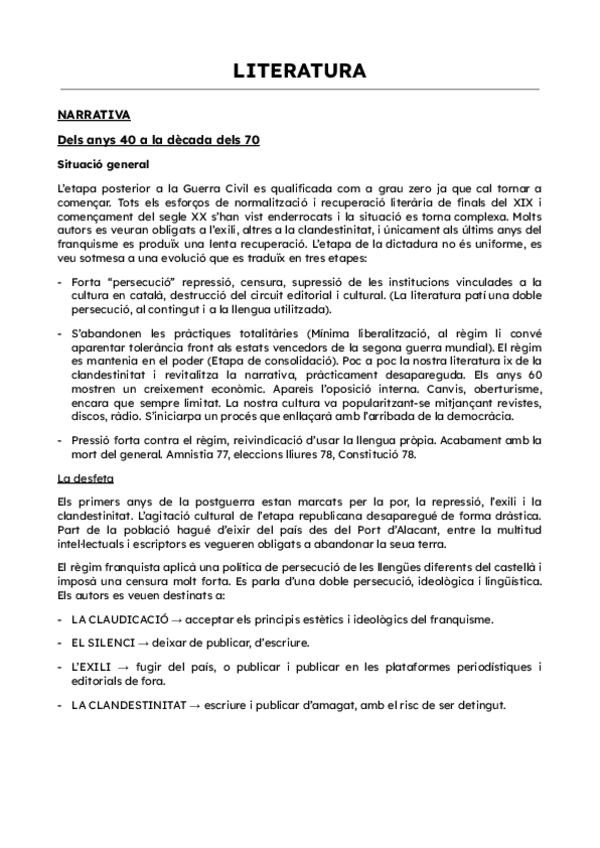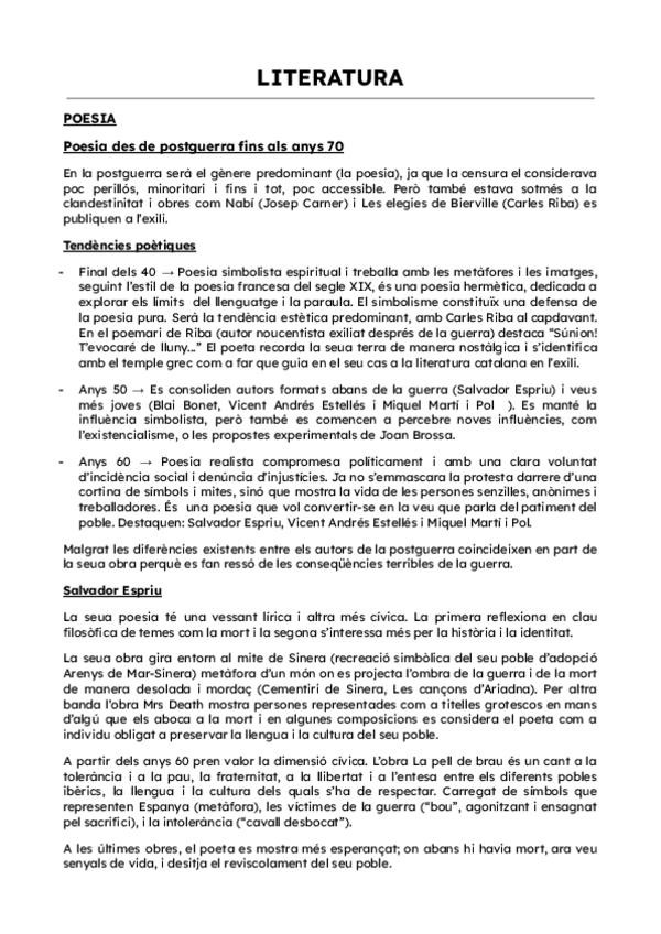 Apuntes de todos los apartados de literatura de valenciano de 2ºBachillerato. En la carpeta se incluyen apuntes de: narrativa (Mercé Rodoreda, La plaça del diamant), poesia (Vicent Andrés Estellés, Llibre de meravelles), teatre (Rodolf Sirera, El verí d