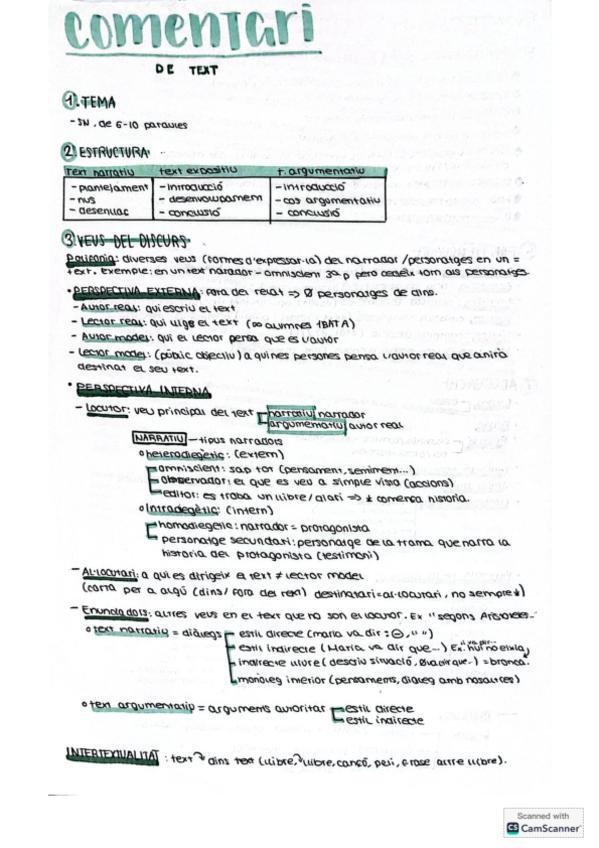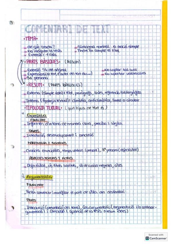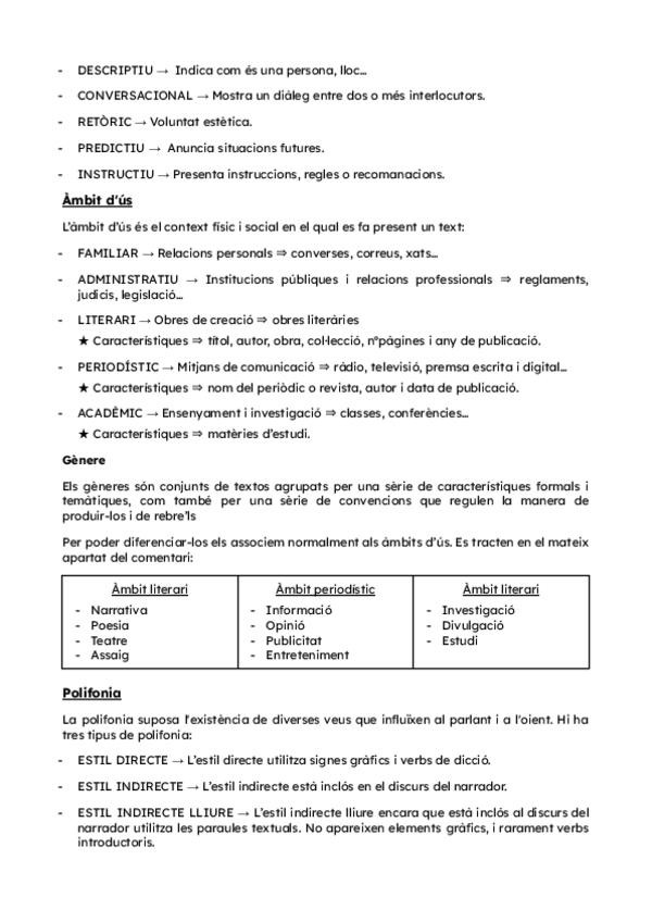 Apuntes de los apartados que se incluyen para hacer un comentario de texto de valenciano de 2ºBachillerato. En la carpeta se incluyen los siguientes contenidos: tema, parts bàsiques, resum, tipologia textual, àmbit d'ús, polifonia y modalització.