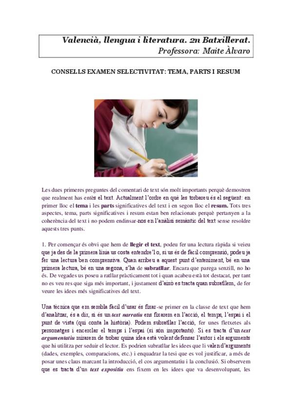 He publicado nuevos apuntes de 2º Lengua Valenciana y Literatura II: CONSELLS-EXAMEN-SELECTIVITATtema-resum-parts.pdf