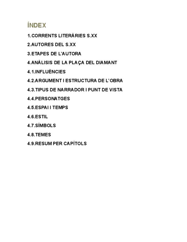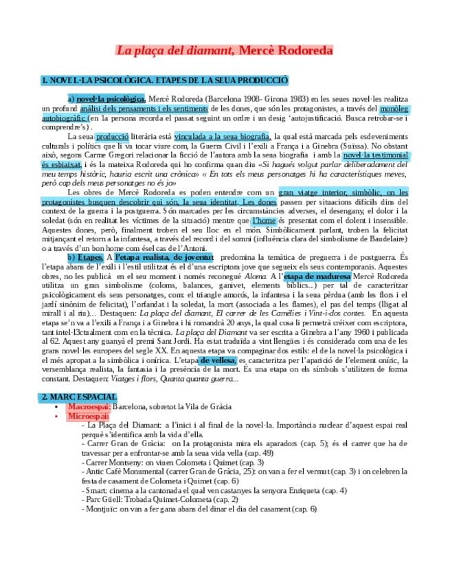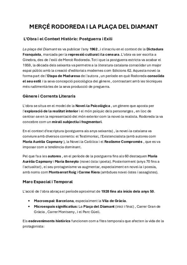 LITERATURA: MERCÈ RODOREDA I LA PLAÇA DEL DIAMANT CONTINGUT PER A LES PROVES PAU