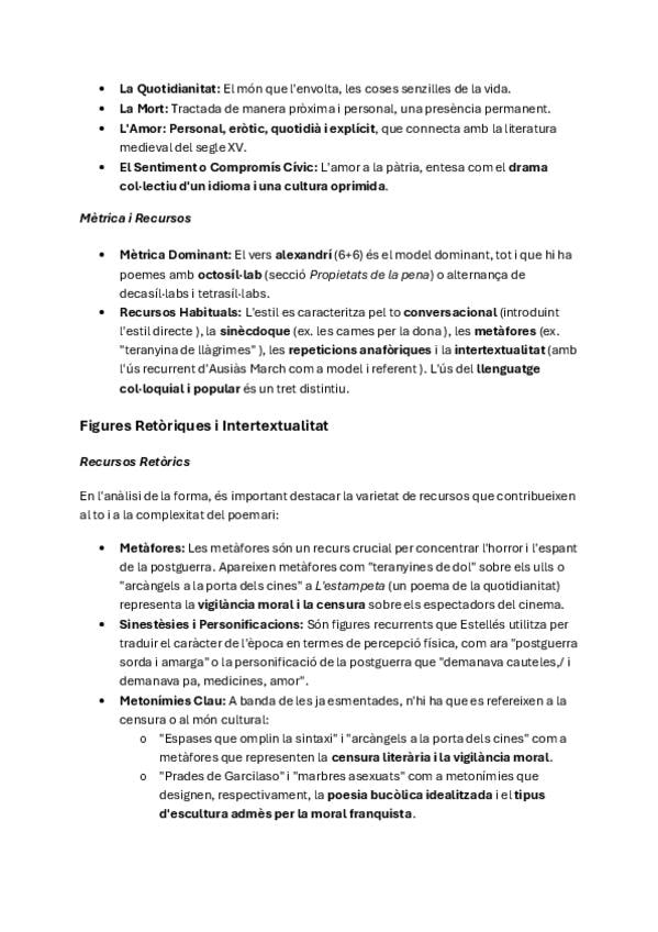 Ací jau tot lo necessari de la poesia al segle XX, inclou la informació tant d'Estellés com de Maria-Mercè Marçal. Encara que hi ha informació de l'estil els temes... no l'anàlisi específic dels poemes seleccionats, si ho voleu ho puje.
