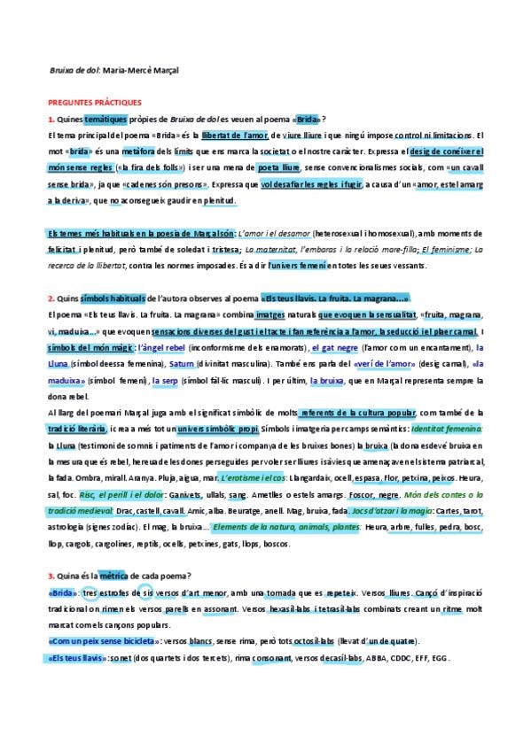 Resumen Maria Mercè Marçal: Bruixa de dol (Anàlisi de poemes)