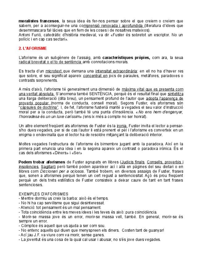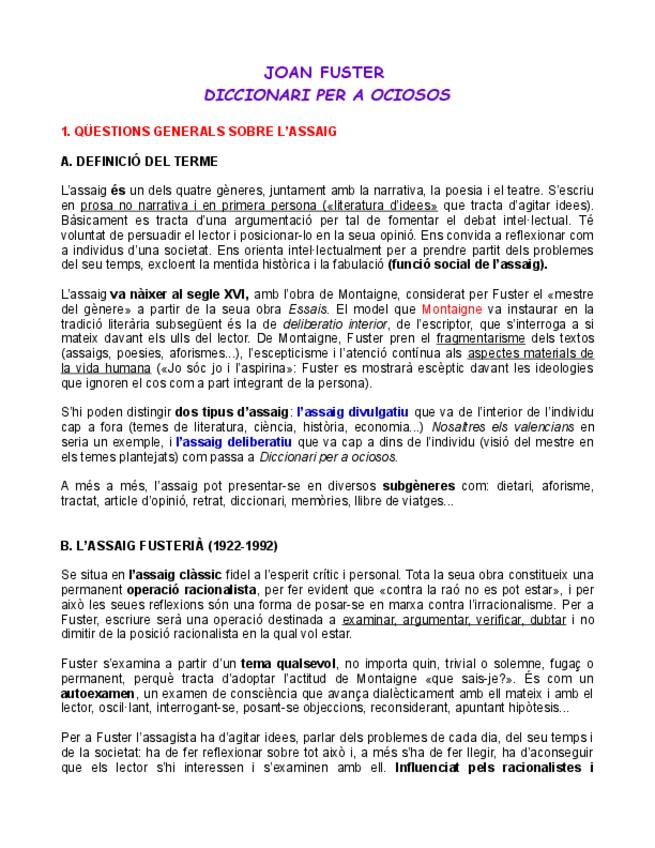 "Assaig Joan Fuster" Apuntes PAU literatura: Diccionari per a Ociosos (Contexto y Aforismos).