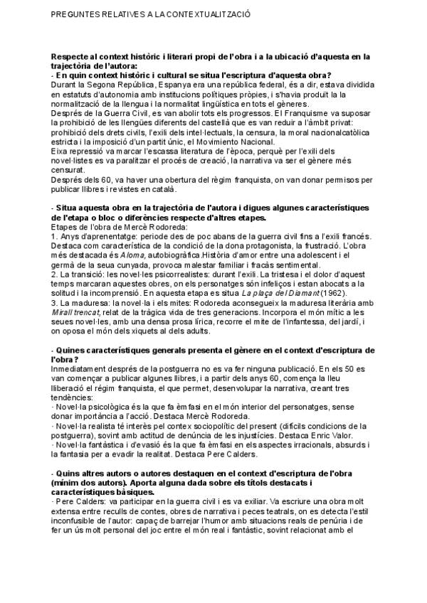 He publicado nuevos apuntes de Lengua Valenciana y Literatura II: Mercè Rodoreda (La plaça del Diamant)