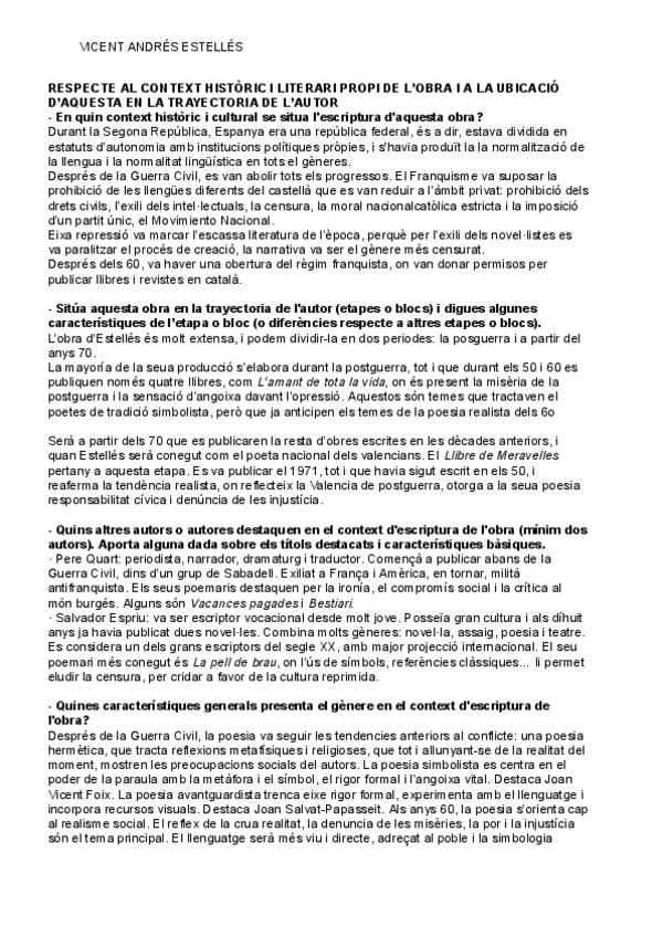 He publicado nuevos apuntes de Lengua Valenciana y Literatura II: Vicent Andrés Estellés (Llibre de meravelles)