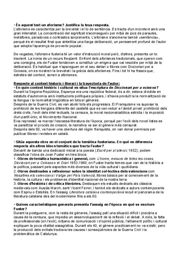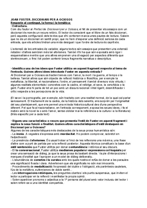 He publicado nuevos apuntes de Lengua Valenciana y Literatura II: Joan Fuster (Diccionari per a ociosos)