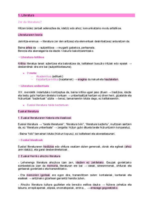 1. Literaturaren teoria: 1.1. Euskal Literatura (Bizenta Mogel) eta 1.2. Amodioa Literaturan (Bernart Etxepare).