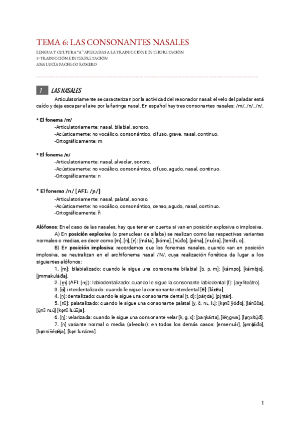 He publicado nuevos apuntes de 1º Lengua y Cultura "A" Aplicadas a la Traducción e Interpretación (I): TEMA-6-CONSONANTES-NASALES.pdf