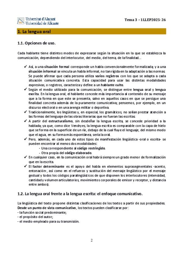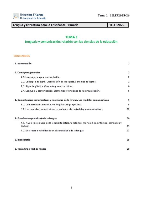 Apuntes de todos los temas de la asignatura Lengua y Literatura Española para la Enseñanza Primaria de 1º de carrera del grado de Maestro en Educación Primaria de la Universidad de Alicante.
