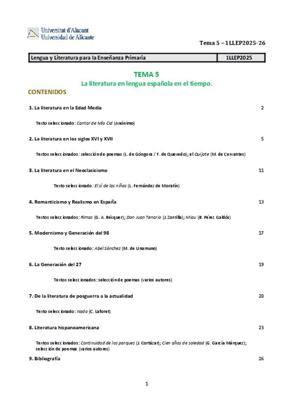 He publicado nuevos apuntes de 1º LENGUA Y LITERATURA ESPAÑOLA PARA LA ENSEÑANZA PRIMARIA: T5 literatura de la lengua española en el tiempo1_250825_135858