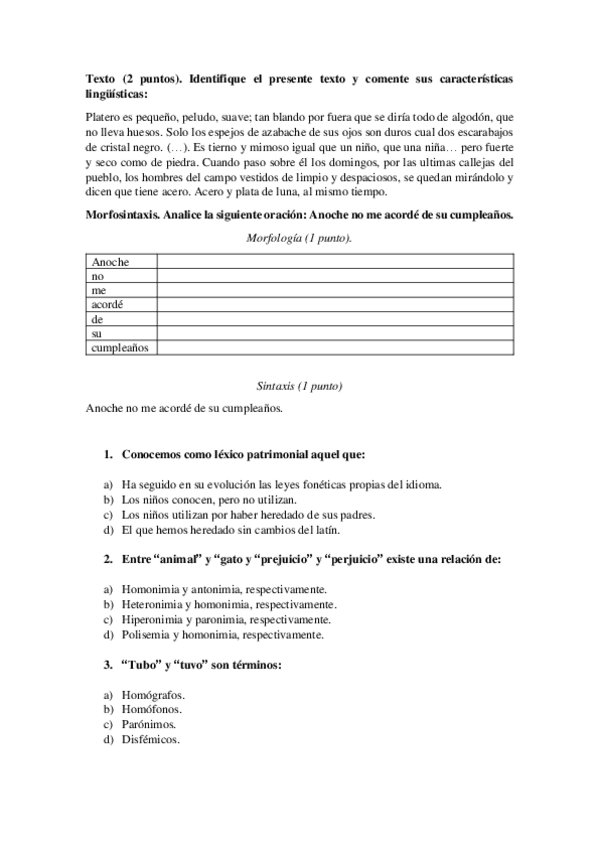 Examen parcial lengua y literatura españolas y su didáctica I.