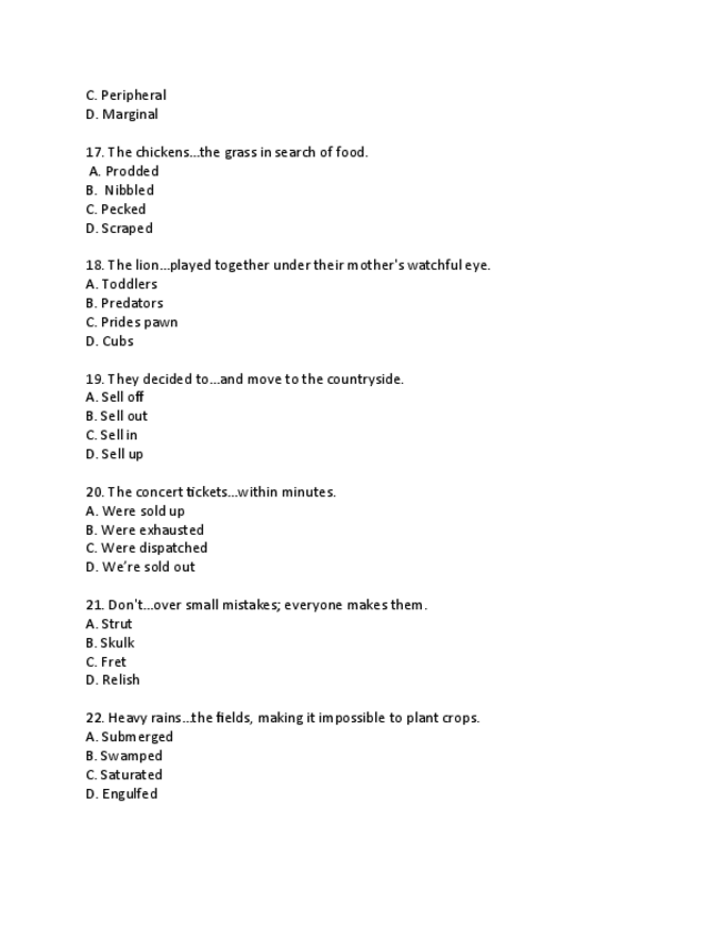 "English BIV Vocabulary Multiple Choice Questions- final exam"