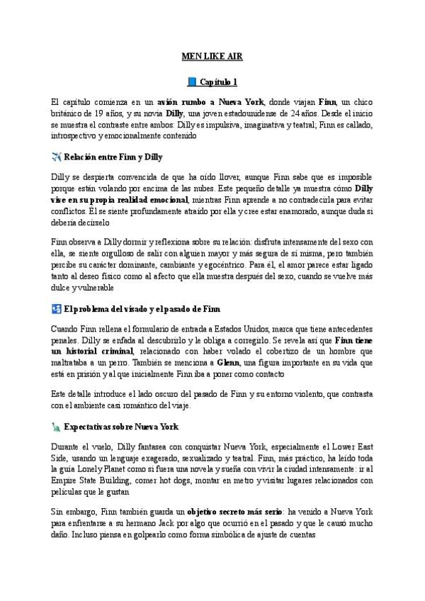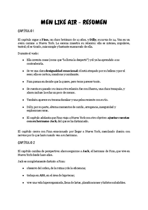 Resumen por capítulos del libro Men Like Air