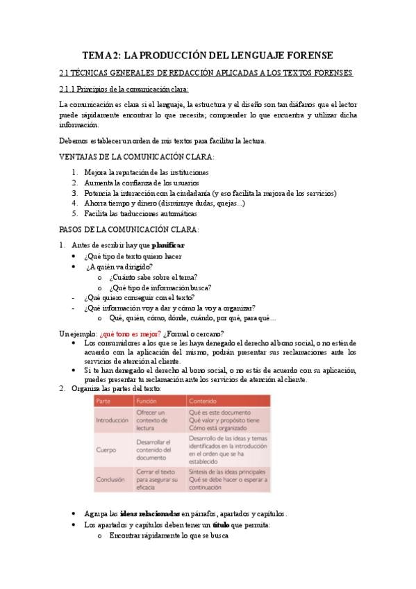 Apuntes Tema 2 de la asignatura Lenguaje Forense de 1º de Criminología de la URJC de Vicálvaro.