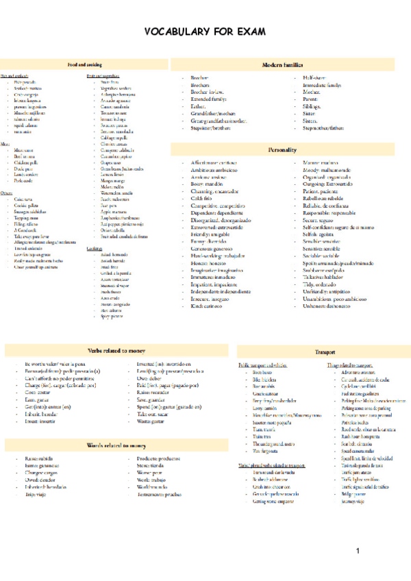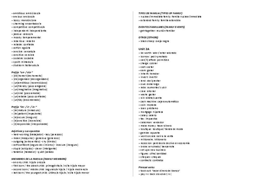 VOCABULARIO Y GRAMÁTICA. Para obtener una buena impresión de los apuntes, selecciona la opción de imprimir 2 páginas por hoja :)